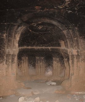 Interno di un'altra sezione, scavata nella roccia (Kipshize L/13) nella valle Tsaghkotsadzor volta a botte.